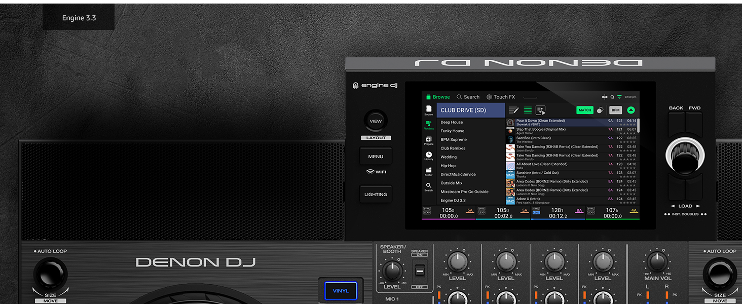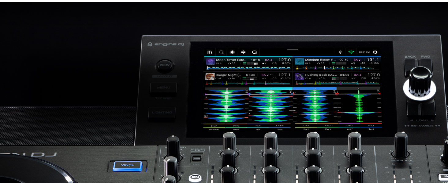 - Laptop-Free Performances with Engine DJ OS - No computer required for professional DJ performances; Bring music tracks to your controller via SD slot and 2 USB ins; Choose your songs and browse your library with the 7" Touchscreen