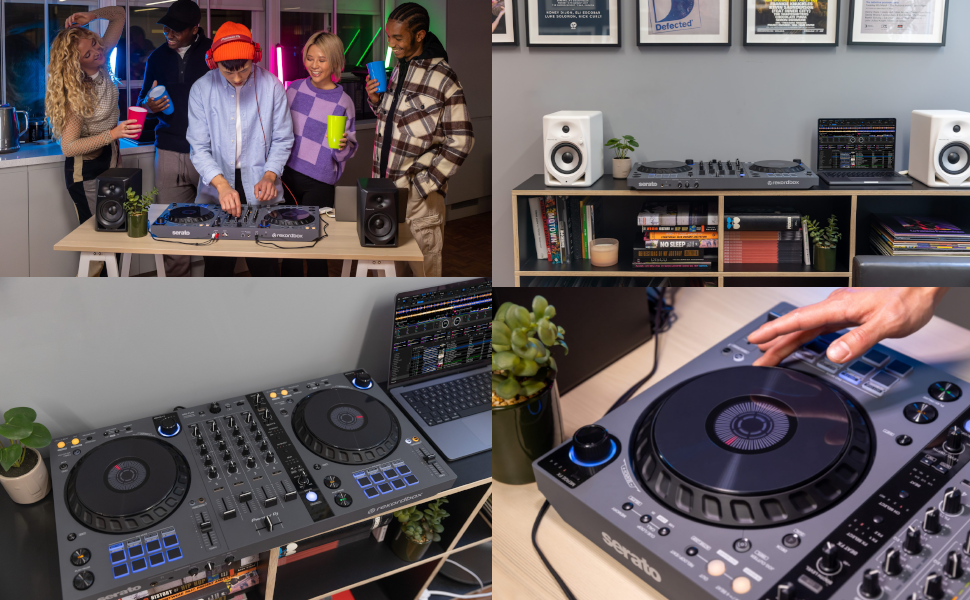 • 4-deck DJ Controller f Serato Rekdbox with Battle-style Setup