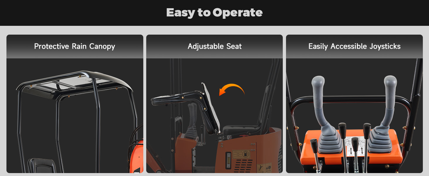 - Easy to Operate: This digger features user-friendly joysticks for operators of all skill levels, while its open design gives you a 360-degree view from the seat, ensuring precision in digging, trenching, material handling, and other landscaping tasks