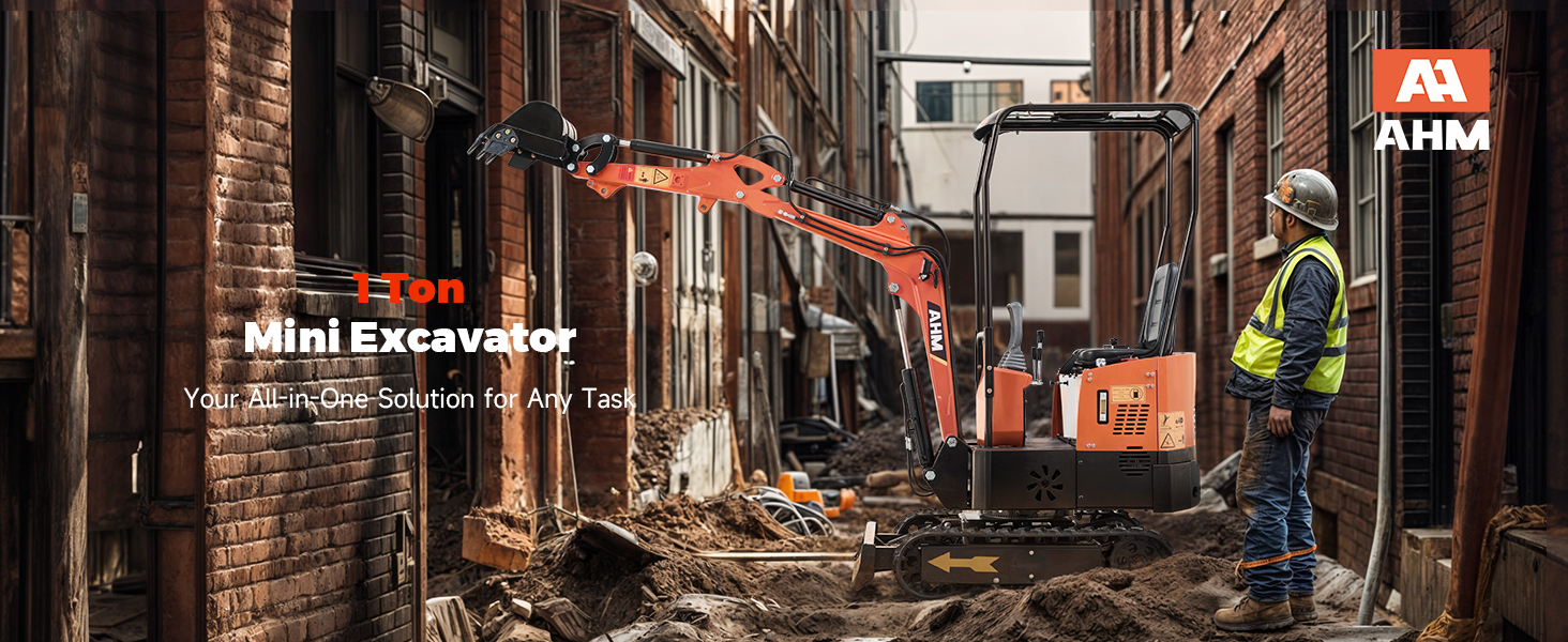 - Designed for Narrow Spaces: With a compact design and a 5.7 ft. maximum digging depth, this 1-ton mini excavator by AMH is tailor-made for construction in narrow lanes, alleys, backyards, gardens, and other tight spaces