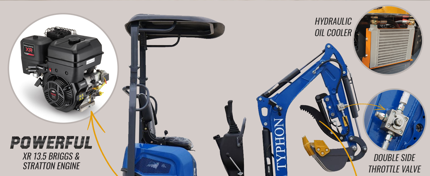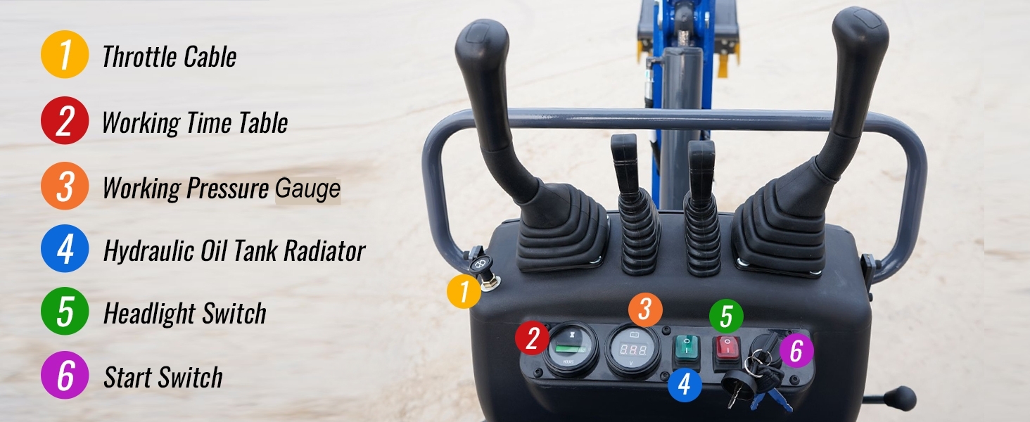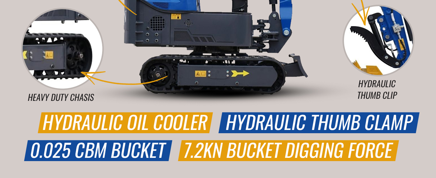 - 5. Included Accessories Comes with 1 x standard digging excavator bucket, hydraulic oil cooler and 1X hydraulic thumb clip. Includes 1 x tool box, 1 x canopy, and 1 x digital manual with comprehensive instructions.