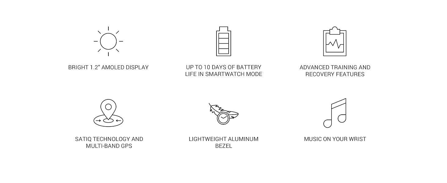 - Up to 10 days of battery life in smartwatch mode and up to 18 hours in GPS mode for a more complete picture of your training and recovery