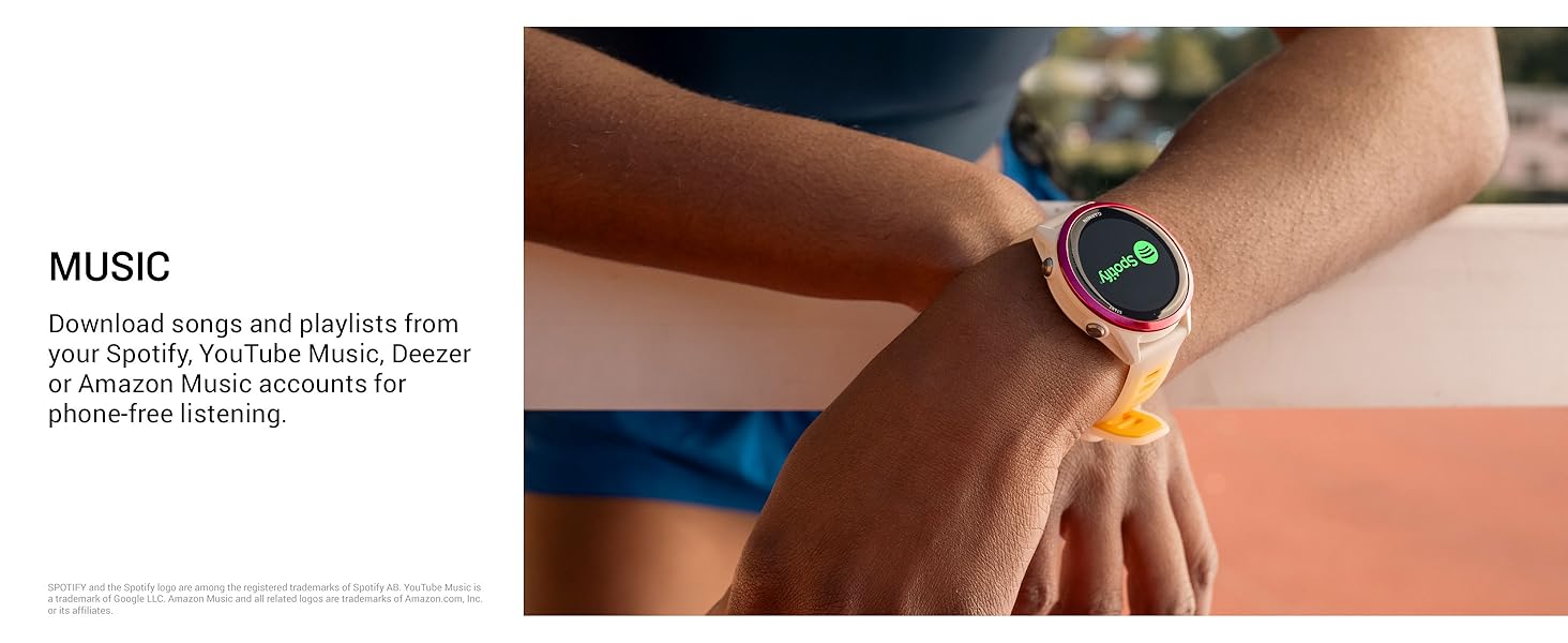 - Our brightest AMOLED touchscreen display with button controls and an aluminum bezel in 42 mm size to fit smaller wrists