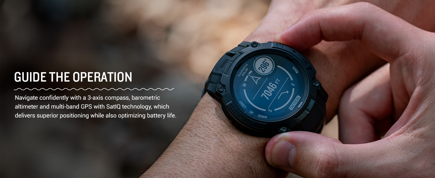 - Navigate confidently with a 3-axis compass, barometric altimeter and multi-band GPS with SatIQ technology, which delivers superior positioning while also optimizing battery life